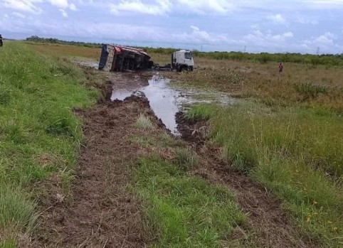 Un camión de transporte de piedras protagonizó un siniestro vial este lunes por la tarde sobre la Ruta Nacional 12, a la altura del kilómetro 952, en jurisdicción de San Lorenzo.
