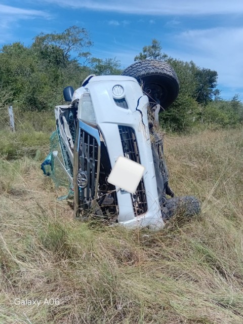 La camioneta Hilux despistó y volcó, sus ocupantes resultaron ileso, solos daños materiales son oriundos de Saladas.